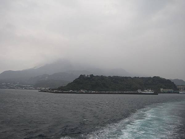 這天下了一整天的雨,櫻島火山顯得朦朦朧朧,風浪很大,但是渡輪十分平穩,一點也不會搖晃。